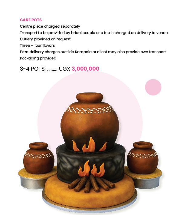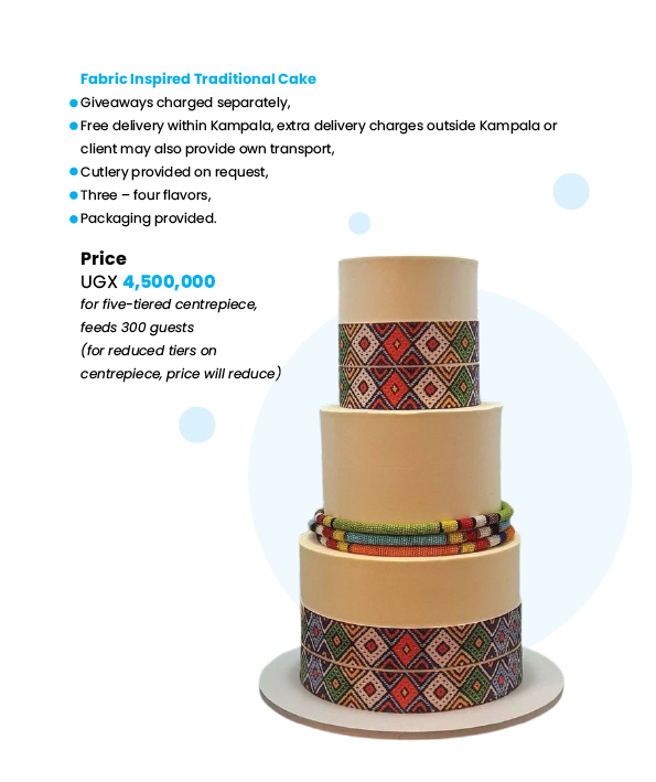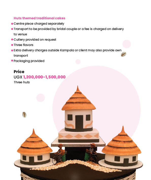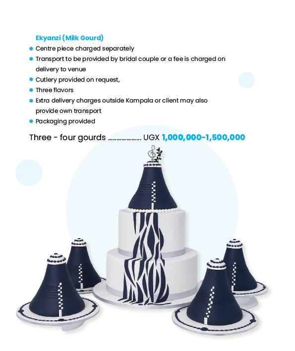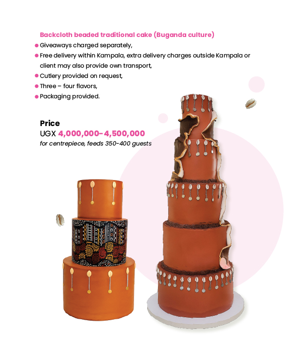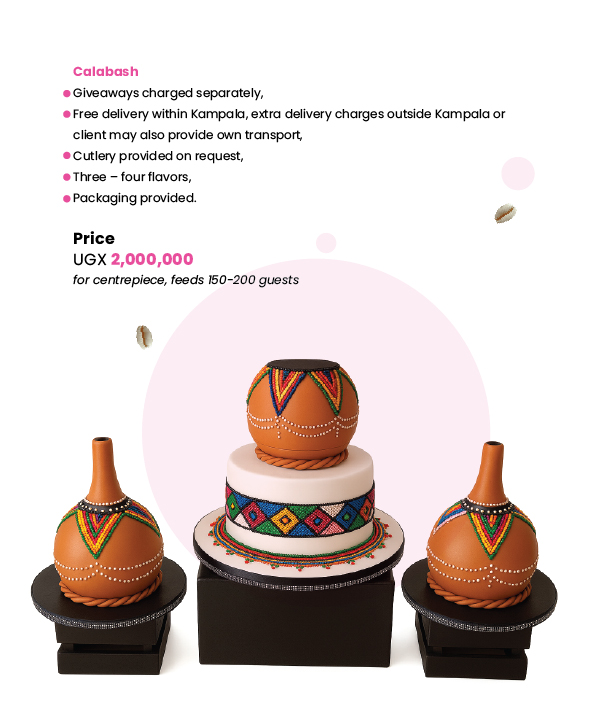 At Cake Paradise, we make traditional marriage cakes that reflect the rich Ugandan culture on your special day. From drums, calabash, fruit baskets, pots, gourds, huts, milk gourds, wrapped luwombo, wildlife, animal print whatever your tradition we will work closely with you to bring your traditional wedding cake to life!