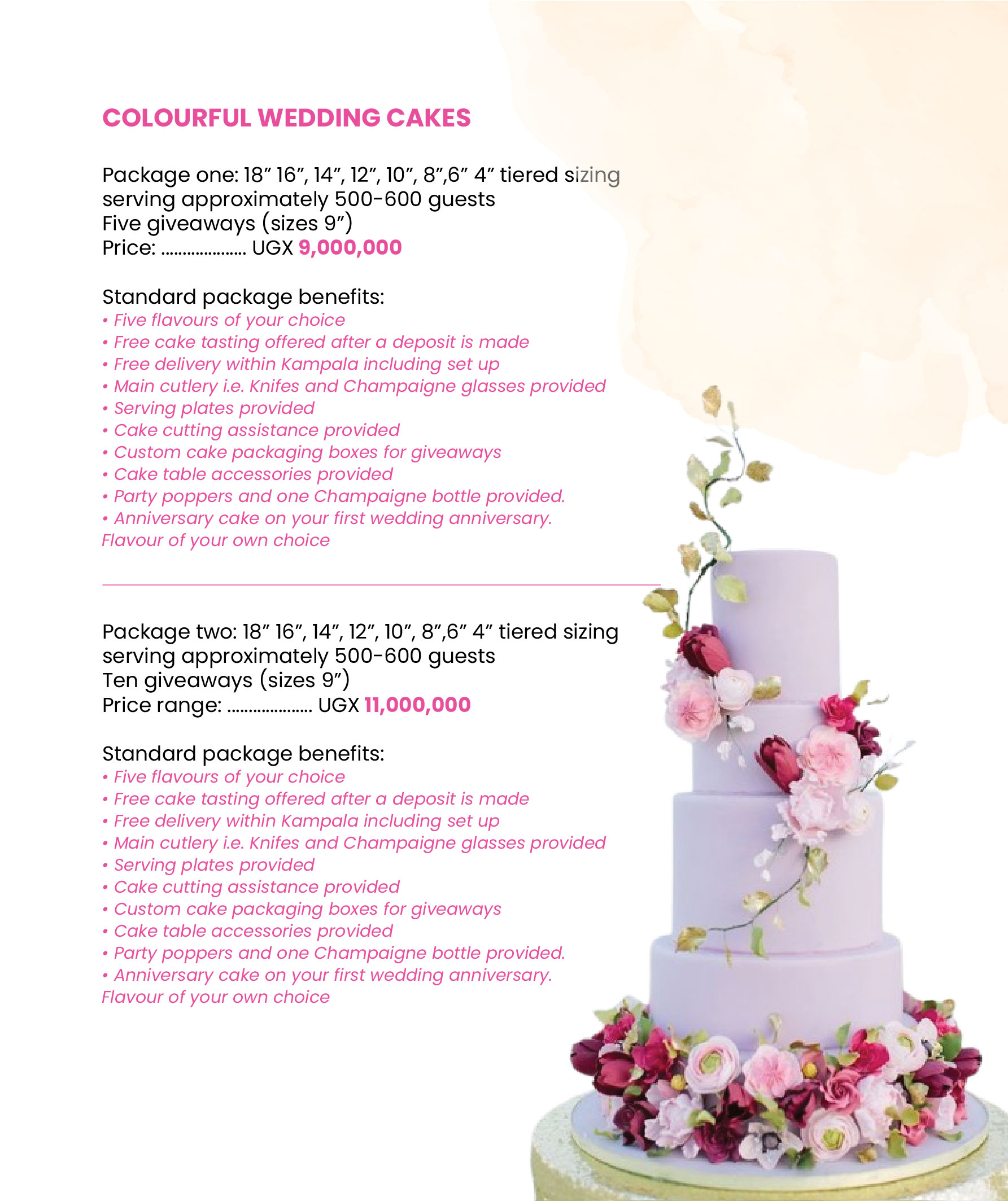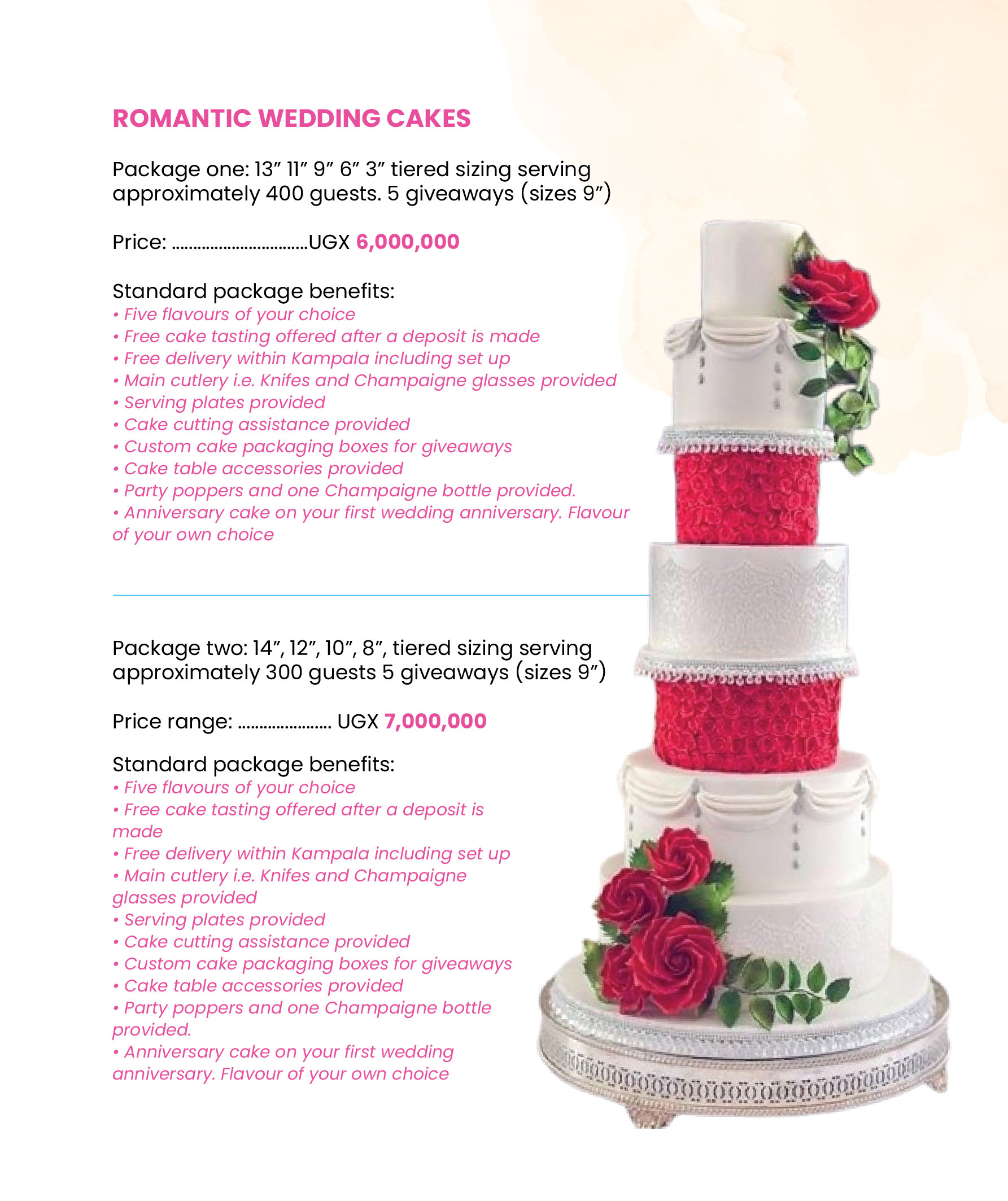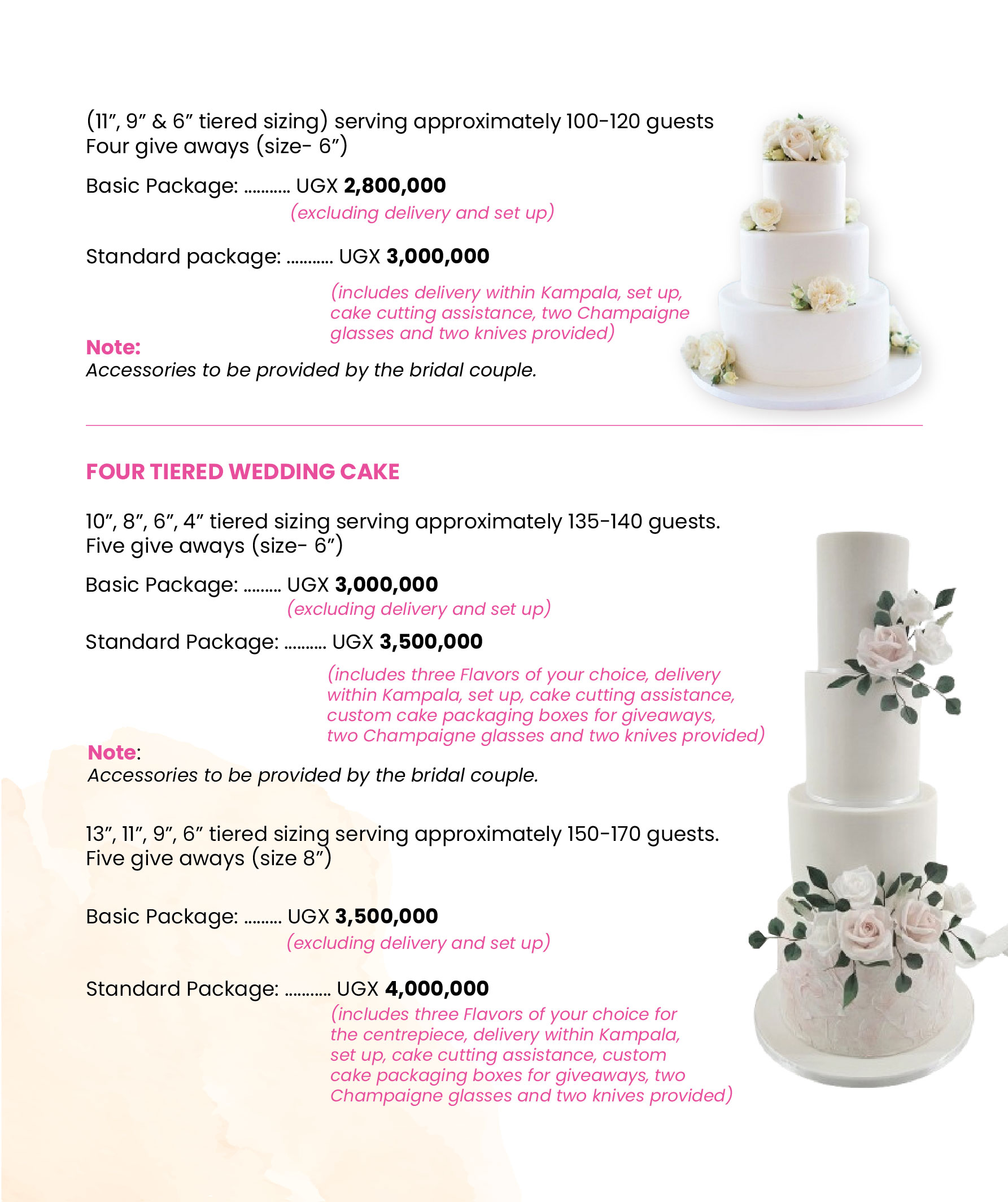 Below are some of our approximate costs for wedding cakes