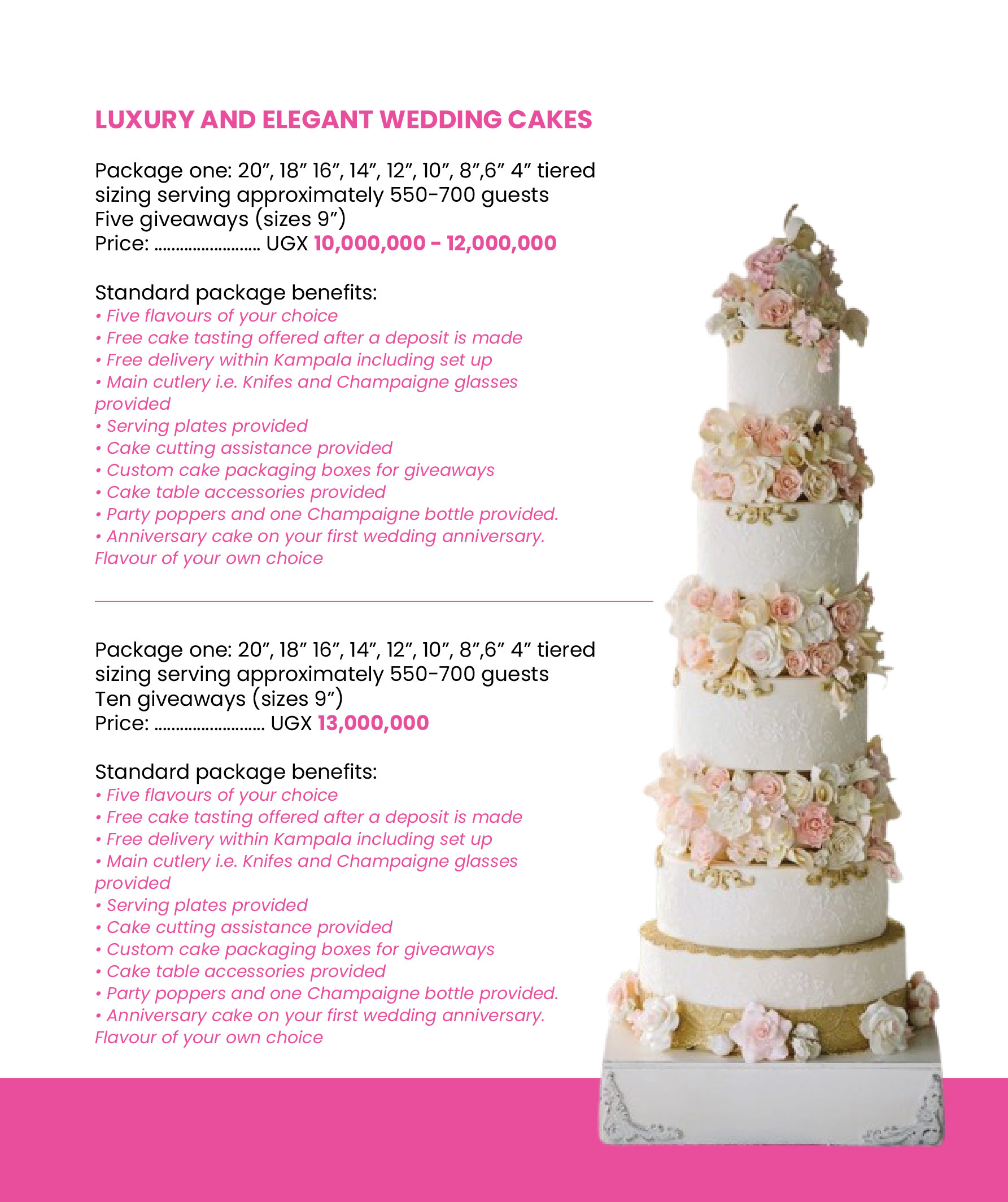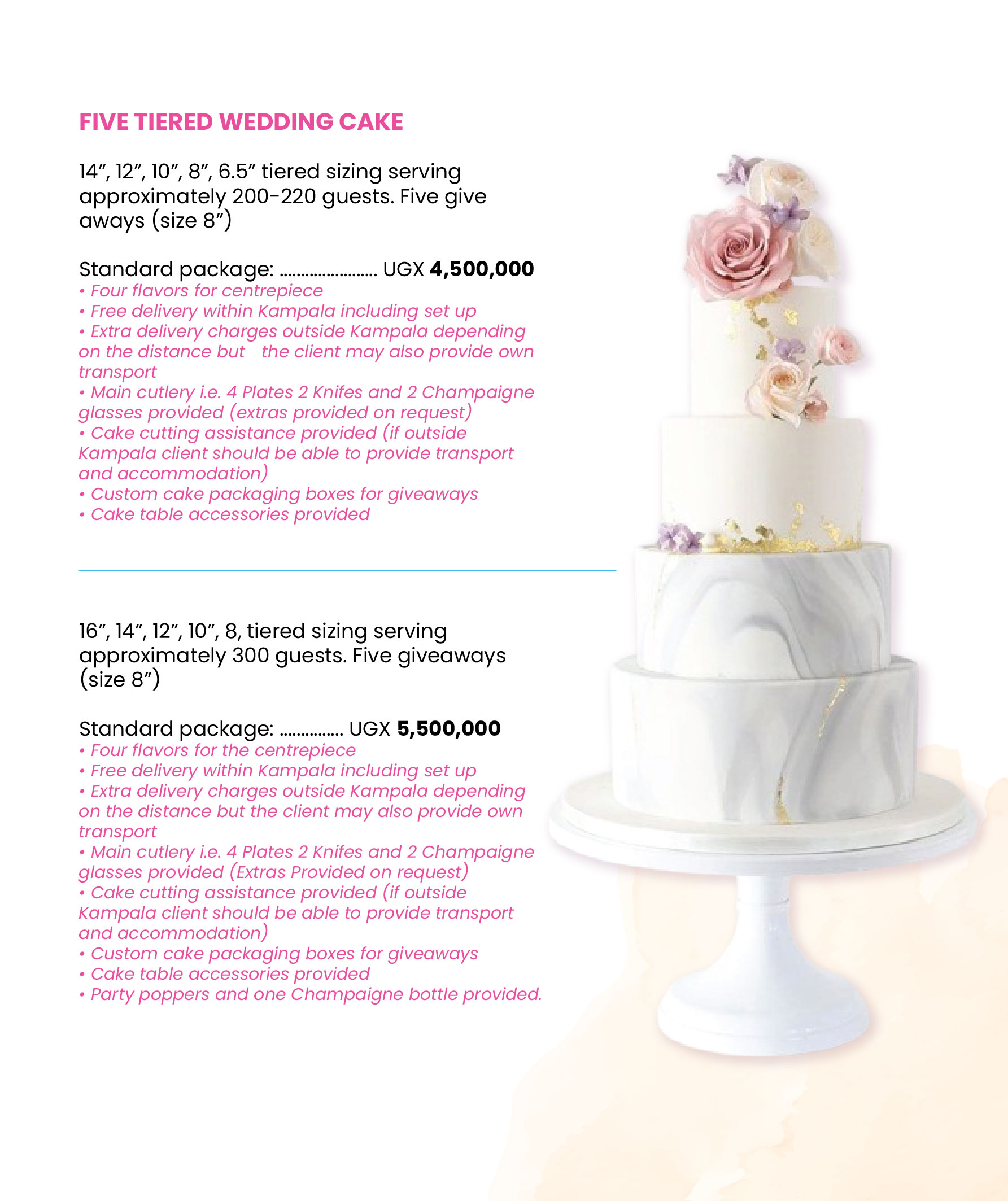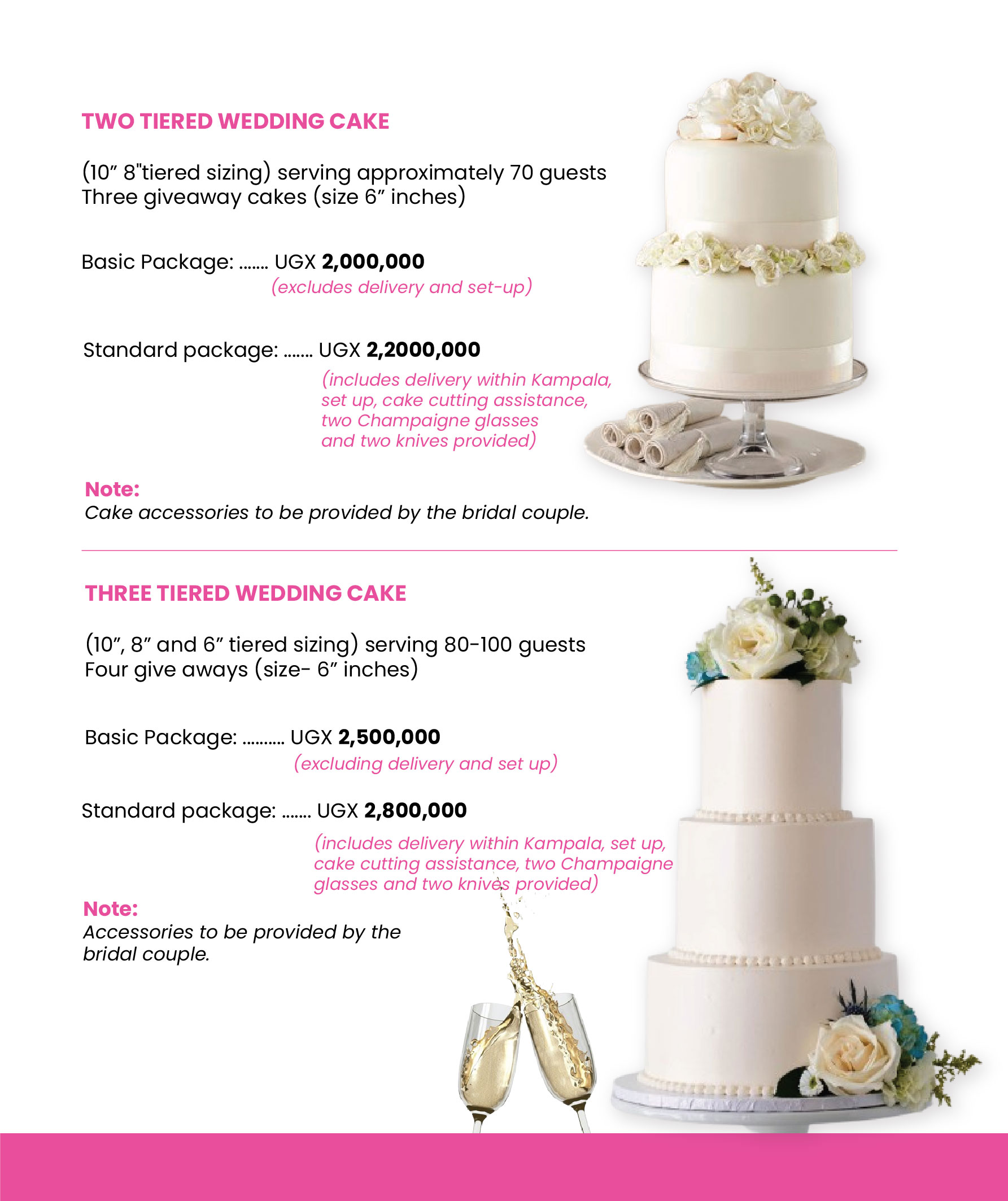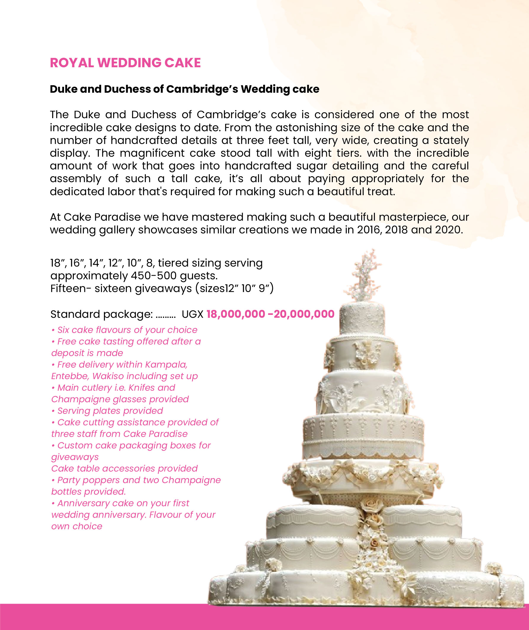 Below are some of our approximate costs for wedding cakes